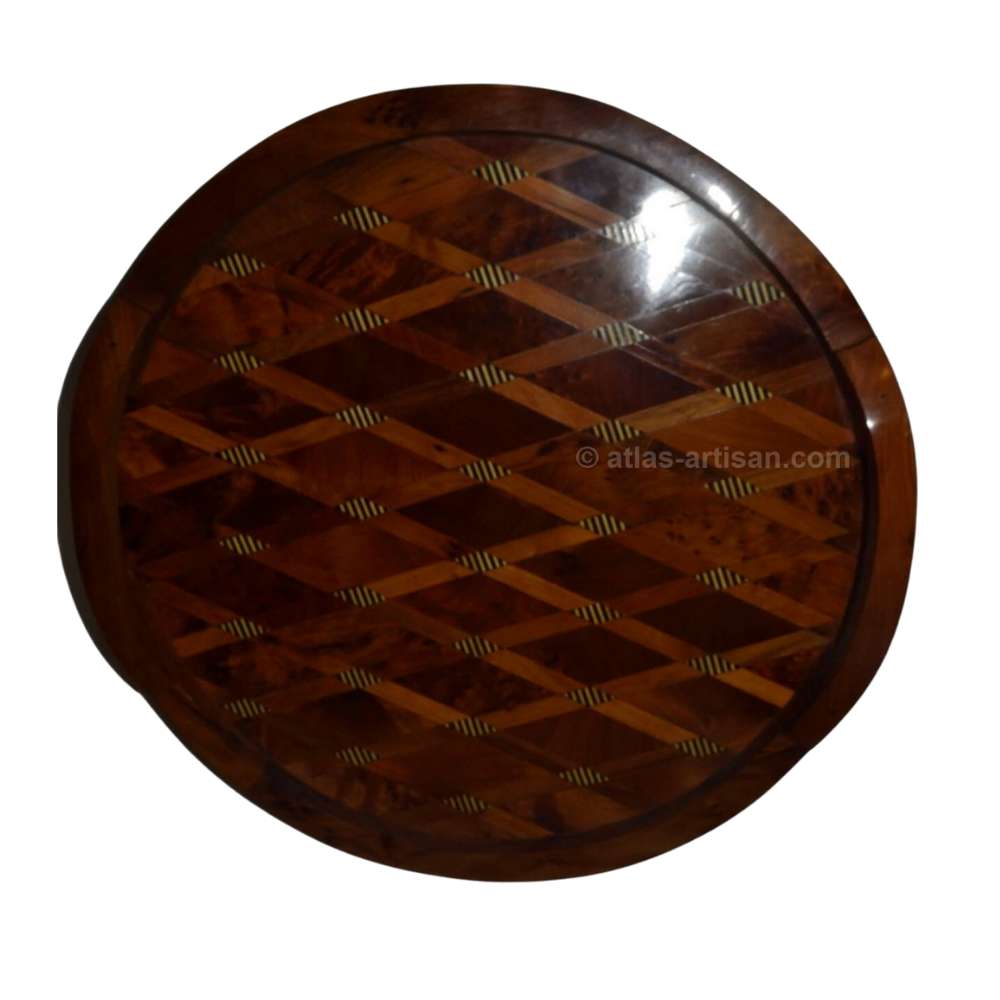 Plateau de service fabriqué en bois de genévrier de haute qualité à la main de nos experts artisans marocains avec une haute finition et un style très originale avec un effet brillant.